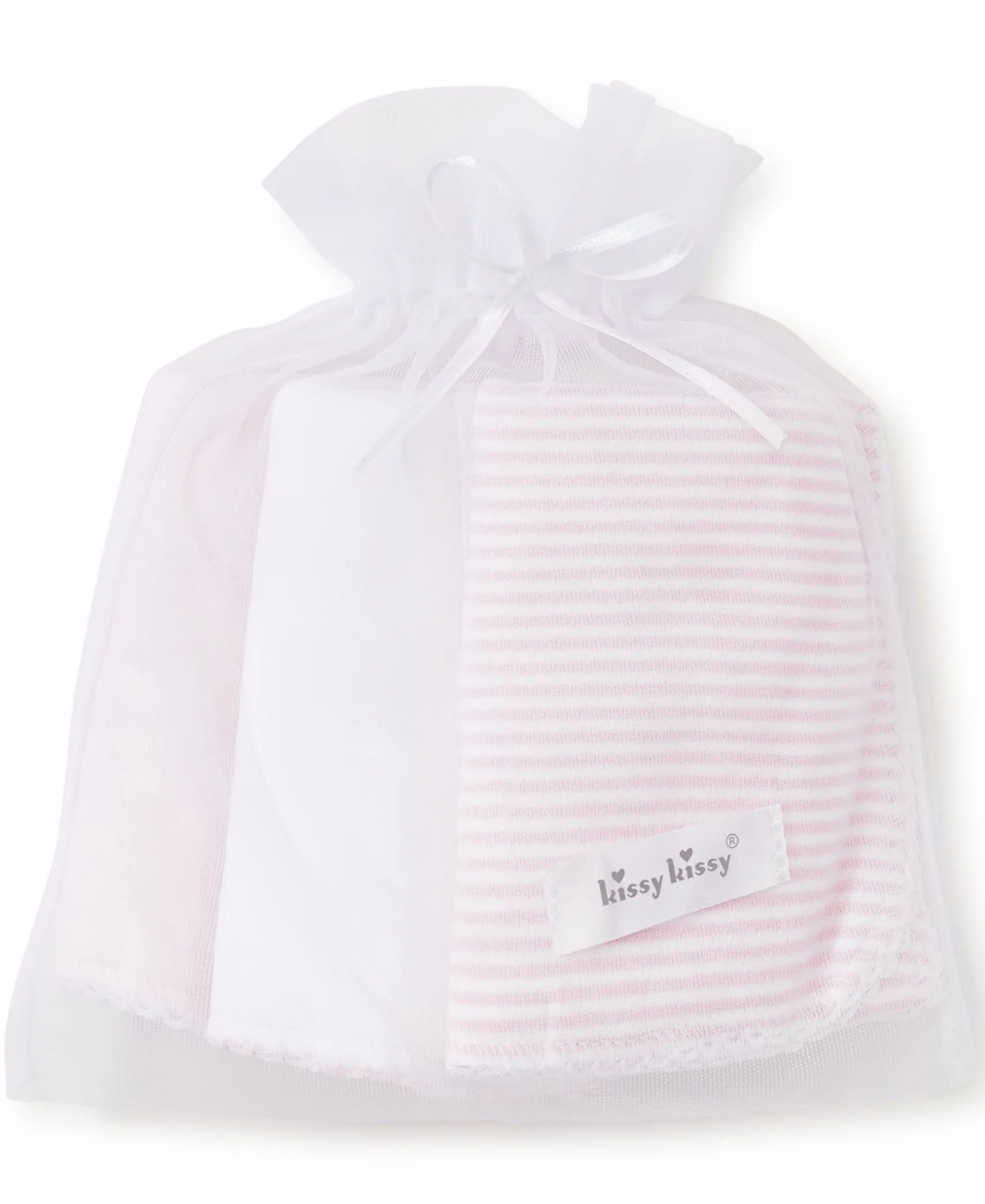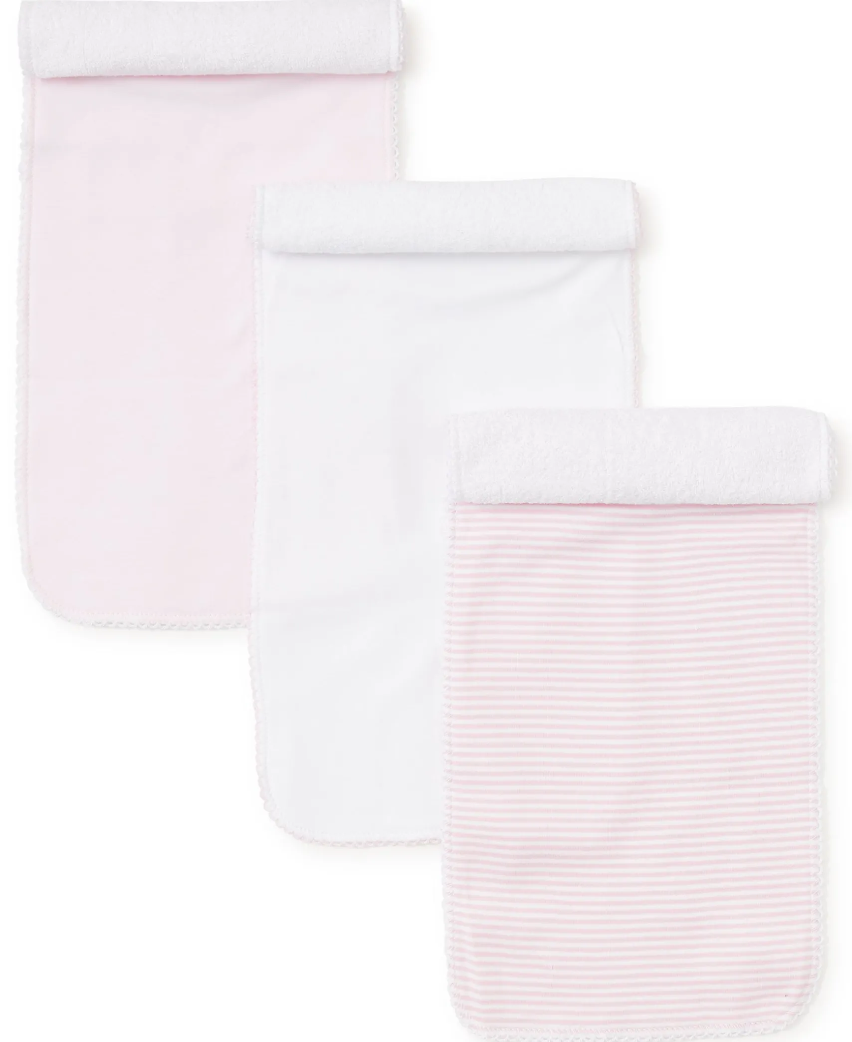 Pink Stripe 3 Pack Burp Set w/ Tulle Bag