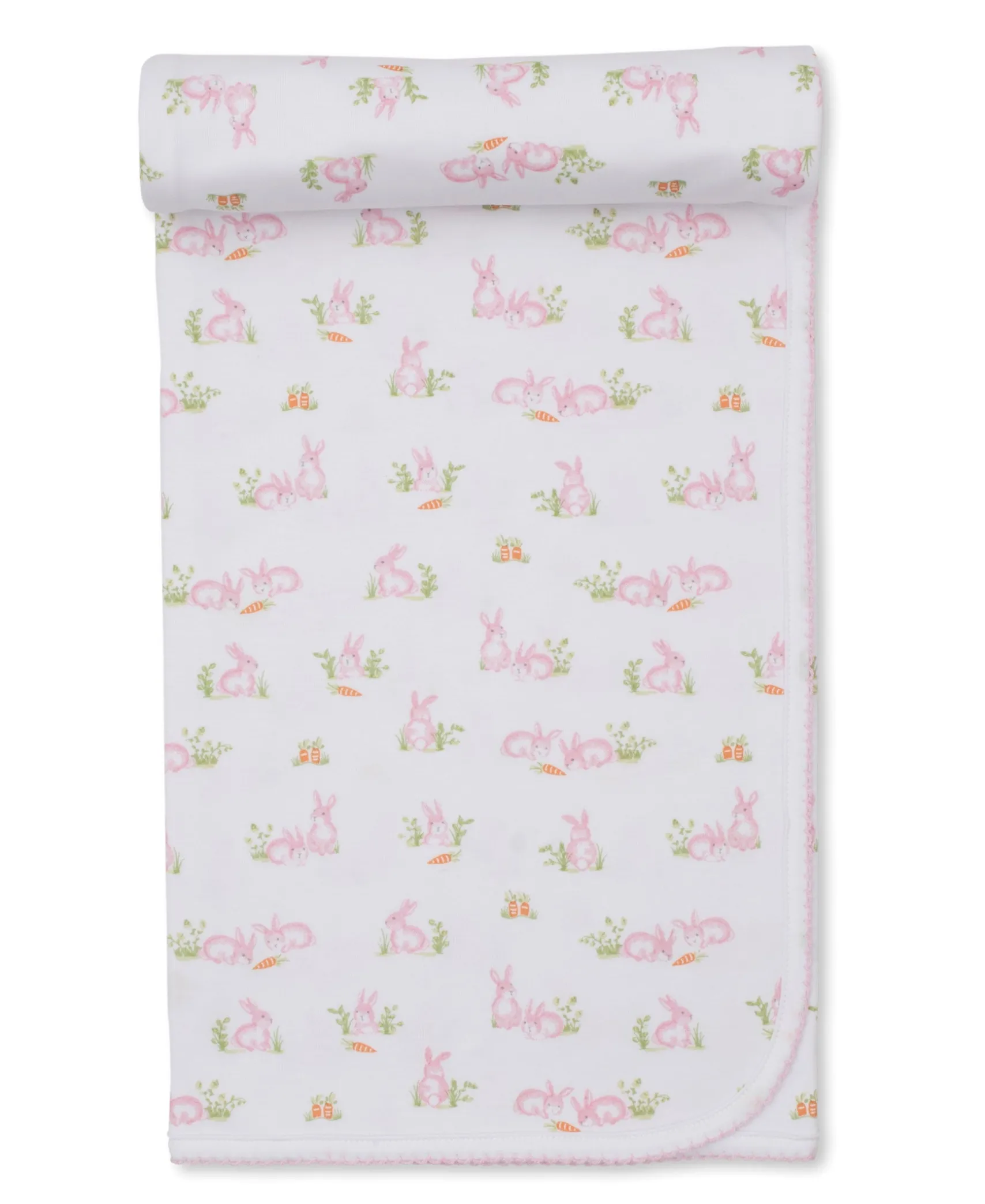 Our allover baby bunny patch print blanket is the coziest blanket for your baby. Made from the softest Pima cotton for ultimate comfort.