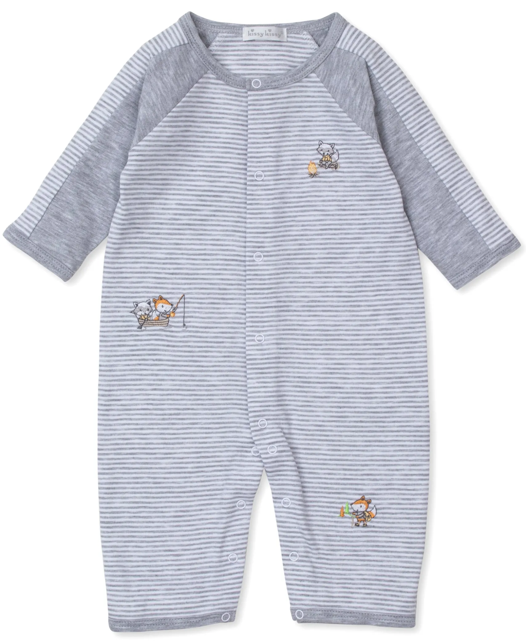 Campsite themed embellishments and stripes mix for the cutest, comfiest playsuit for baby. Made from the softest Pima cotton for ultimate comfort and indulgence for baby. 96% Pima Cotton, 4% Polyester.