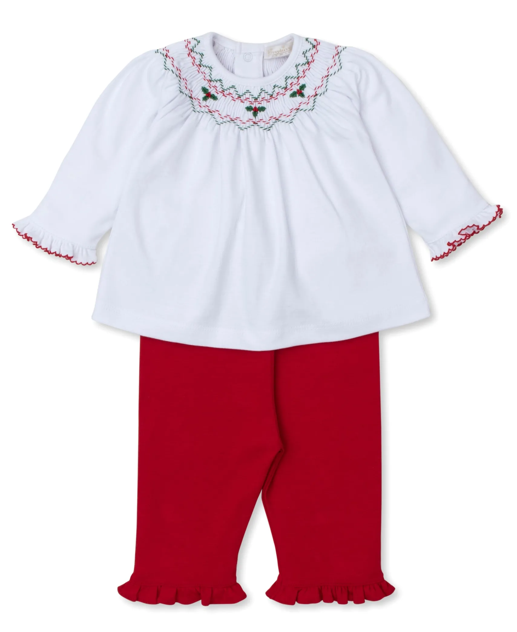 This darling pant set from our CLB Holiday Medley 24 Collection is crafted from the finest Pima cotton, with delicate hand detailing, smocked details, and a timeless design perfect for your baby.This two piece outfit includes a top and pants.