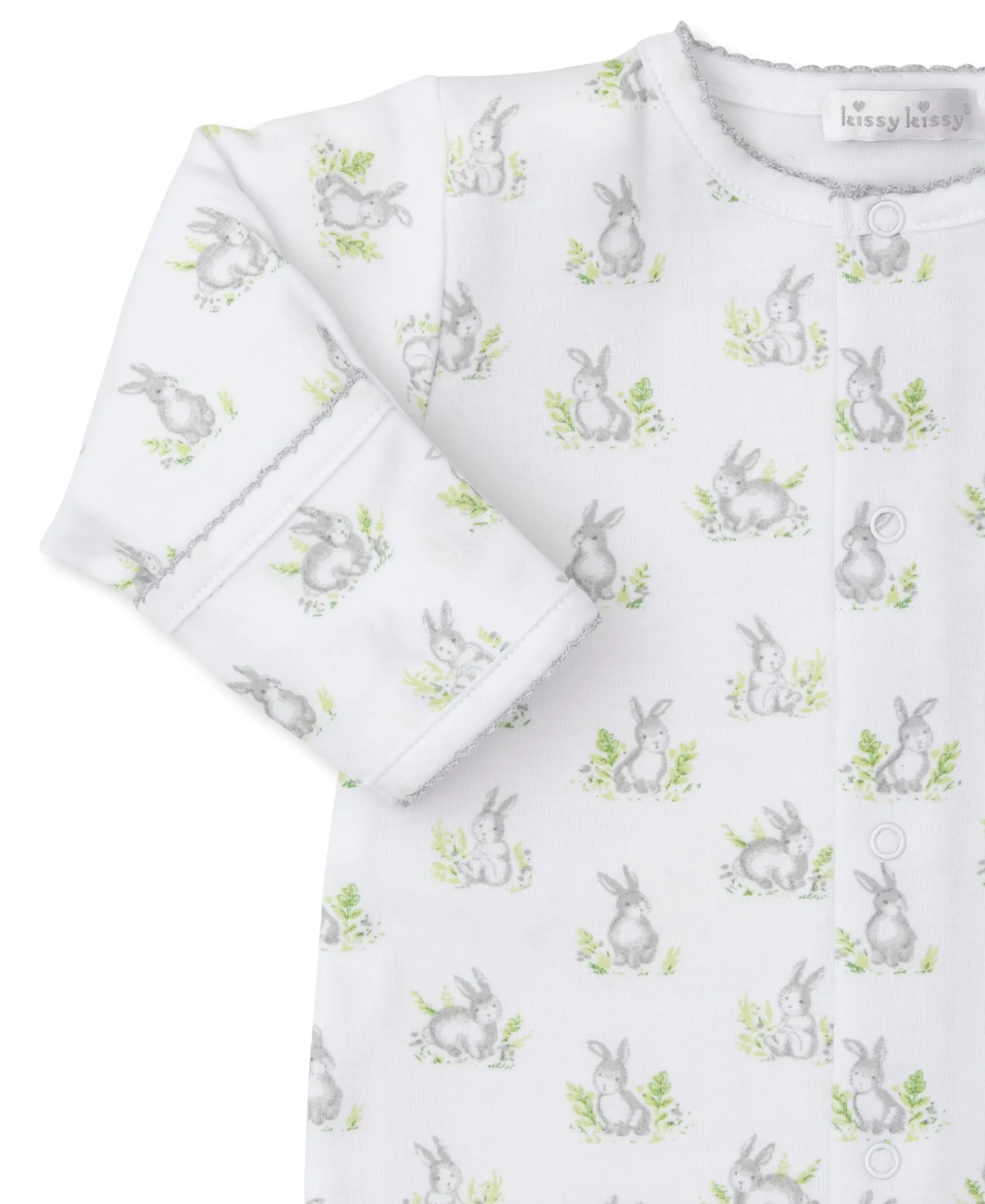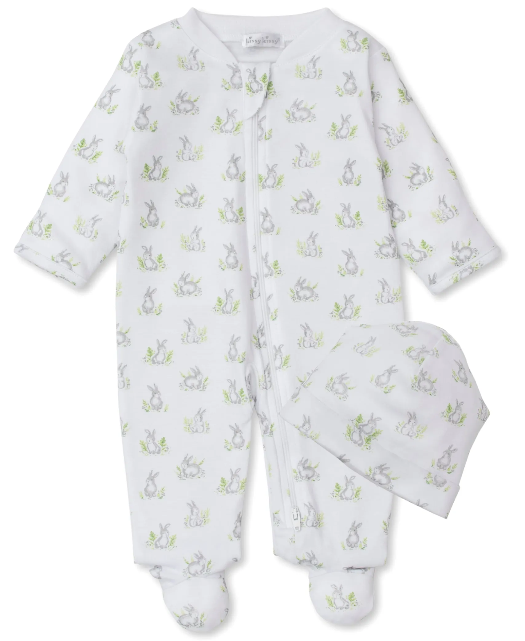 Our silver cottontail hollows print zip footie and hat set is made from the softest Pima cotton for ultimate comfort. Set includes a hat, so your baby can be cozy and covered from head to toe.