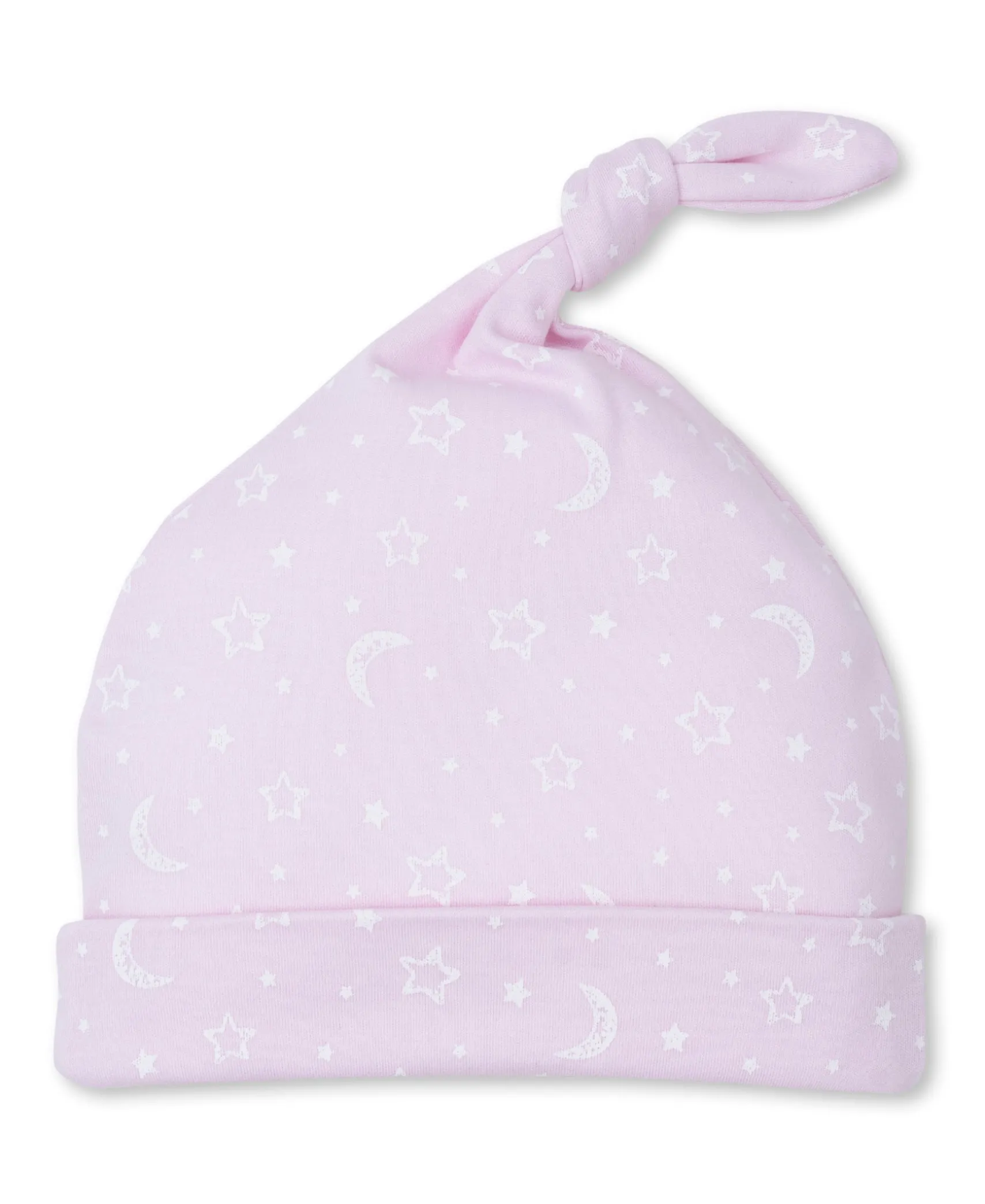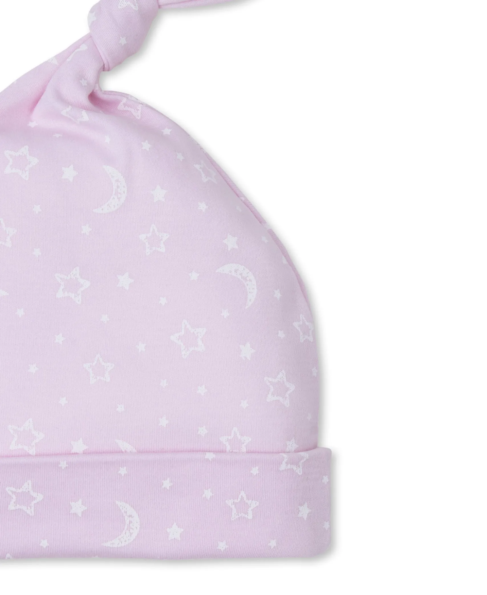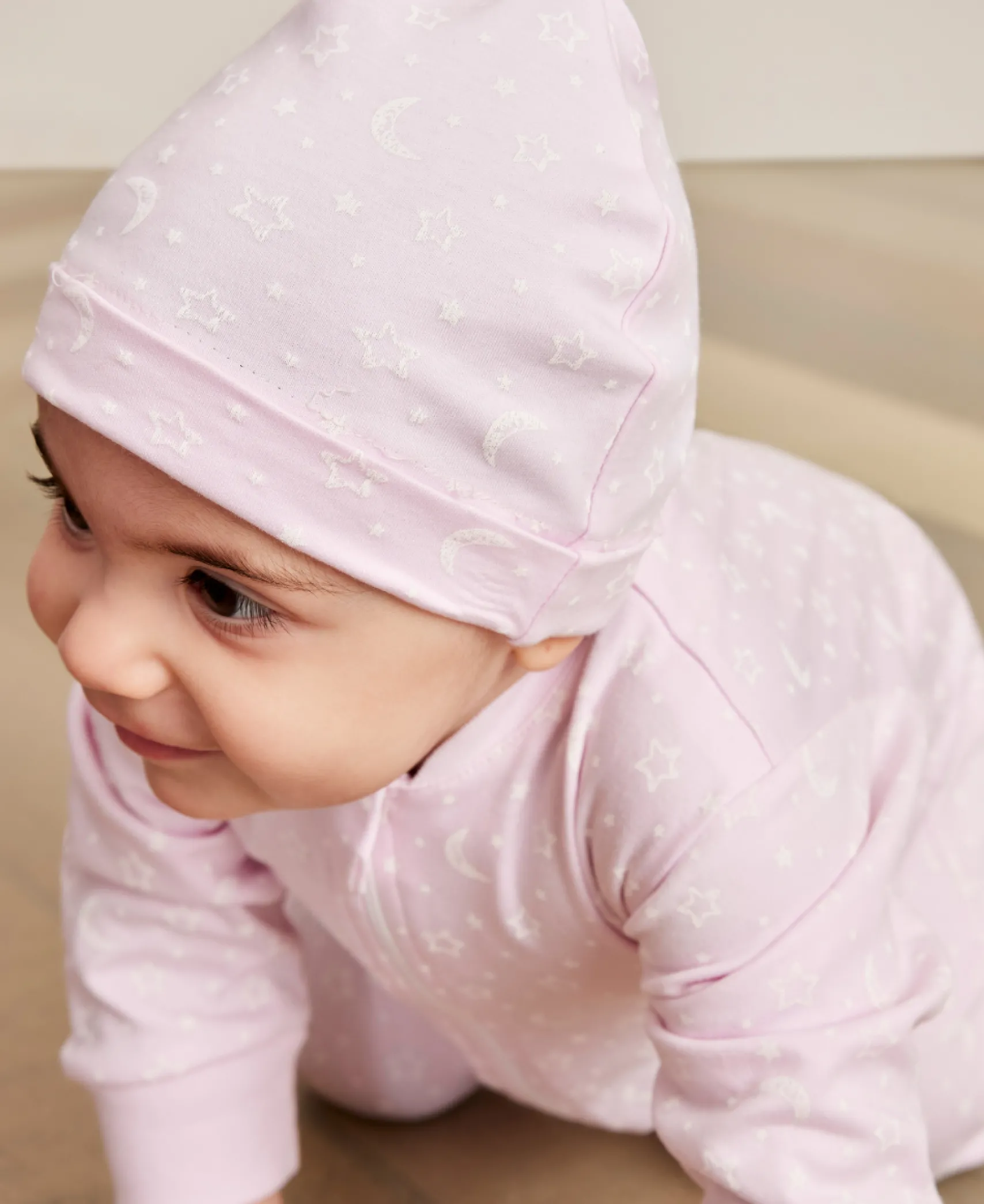 Keep baby’s head warm and covered with this cozy, hat covered in our adorable crescent moonlight print. Made from 100% Pima cotton for the softest, snuggliest fit for baby girl.