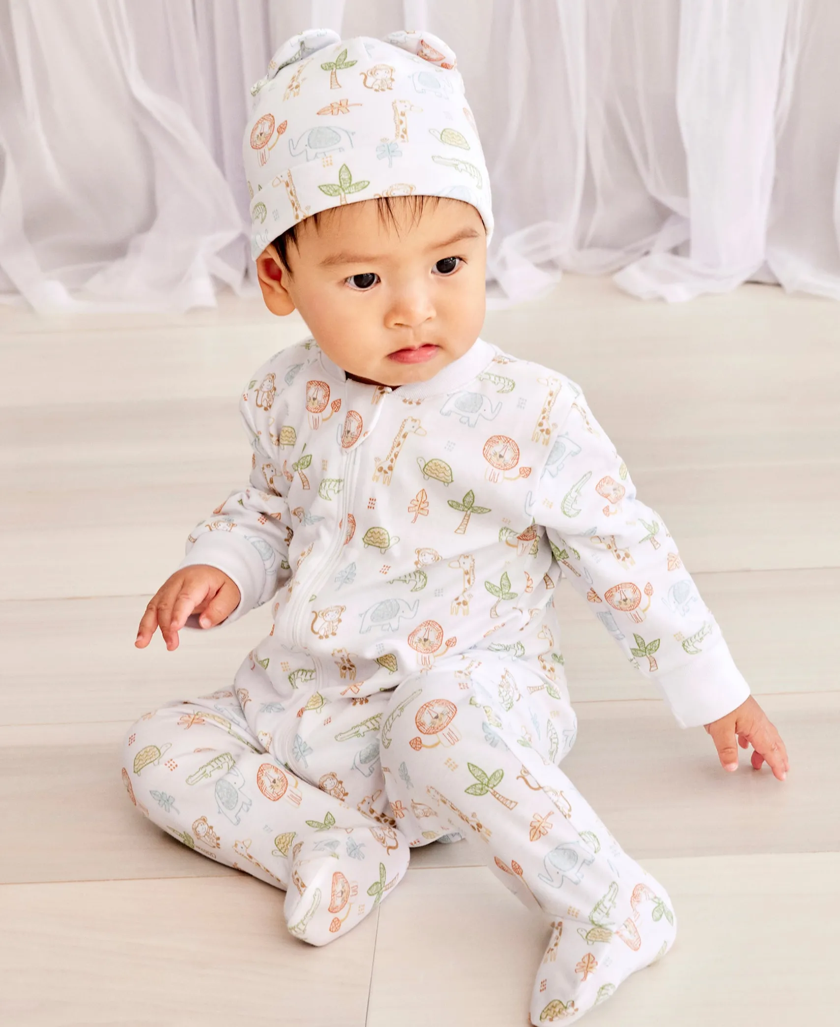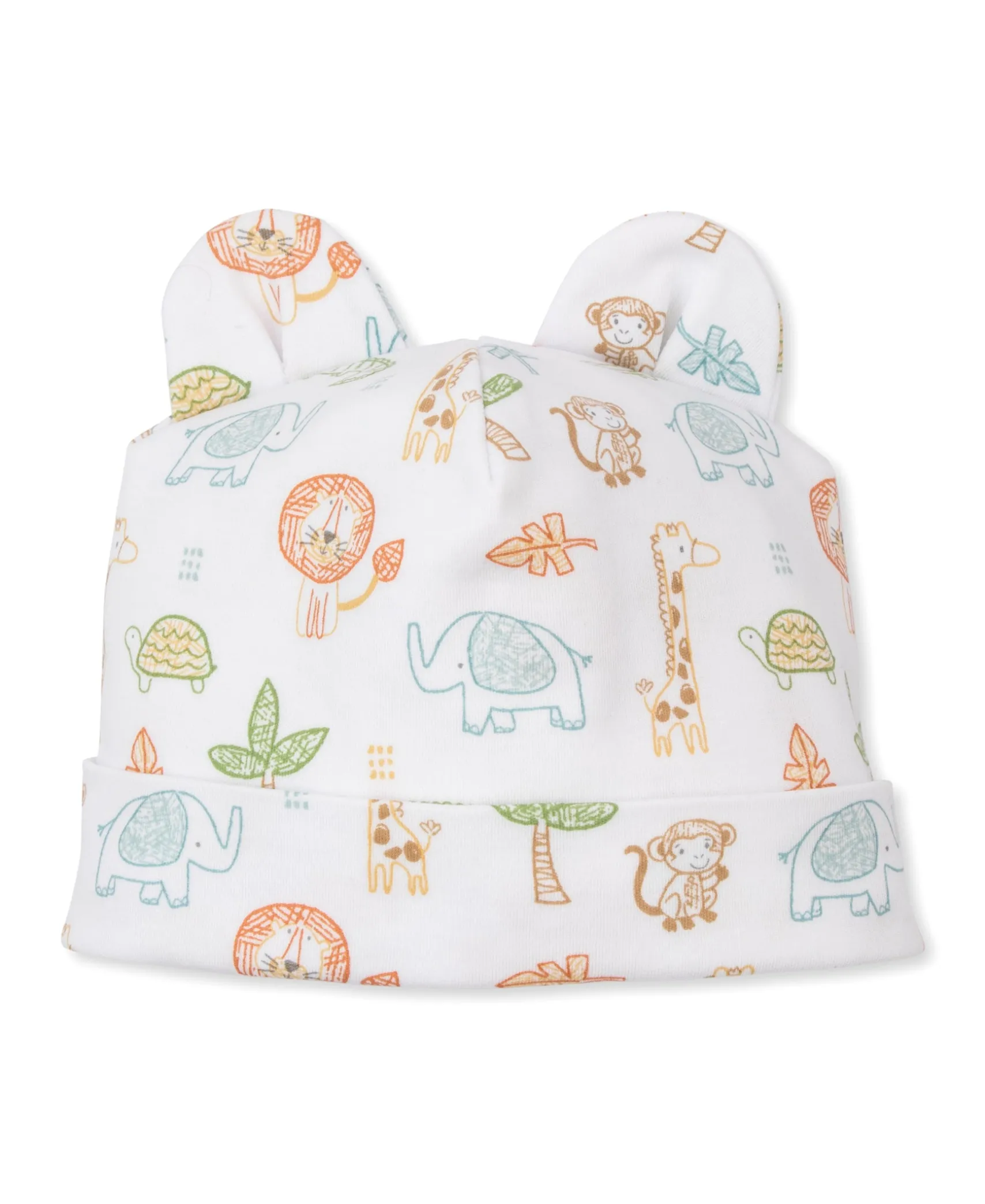 Keep baby’s head warm and covered with this cozy, jungle adventure print novelty hat. Made from 100% Pima cotton for the softest, snuggliest fit.