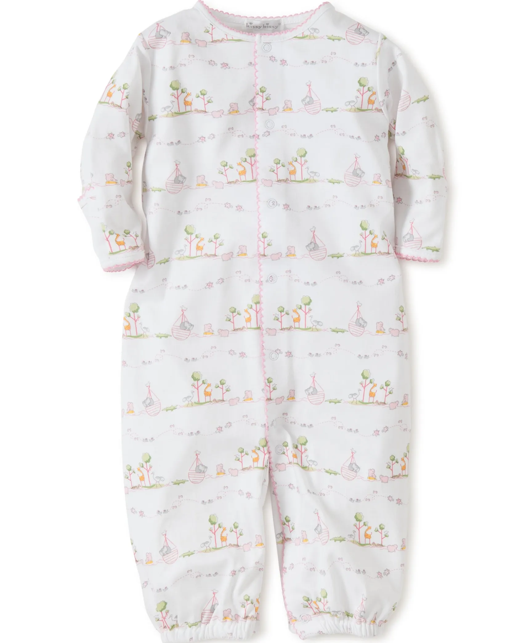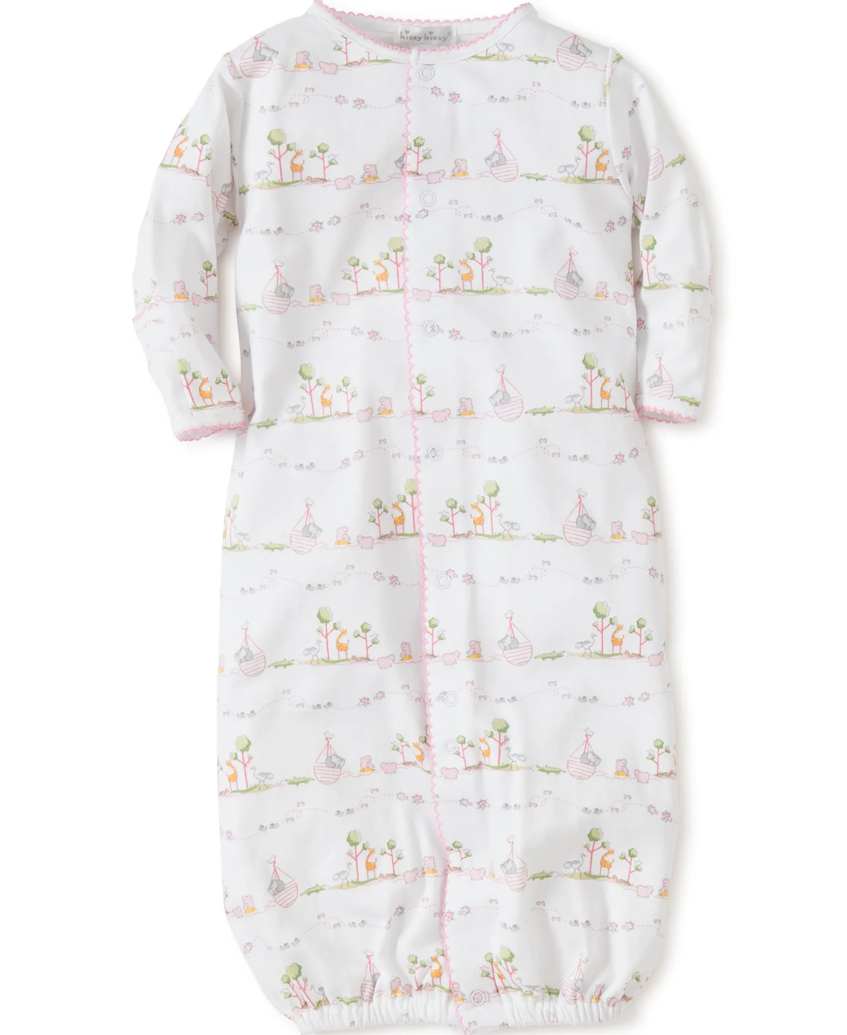 - Noah’s adorable animal friends pattern this cozy gown for your baby girl. Snaps on legs allow for easy conversion to playsuit. Made from the softest Pima cotton for ultimate comfort.