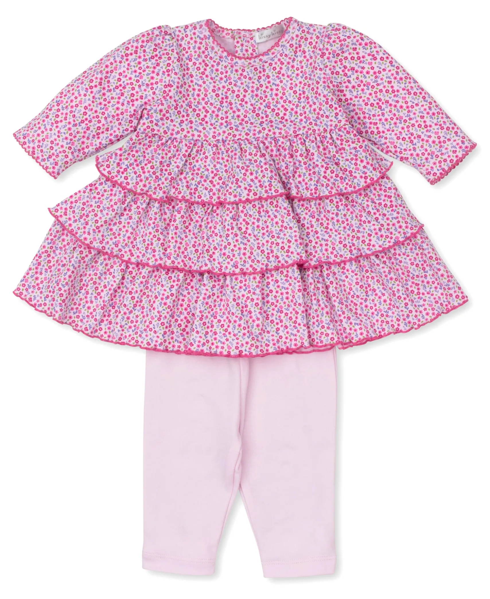 - A darling dress set from our Hearts Abloom collection, crafted from the finest Peruvian cotton. It features a floral print, tiered dress, and timeless design. Two piece outfit includes dress and leggings.