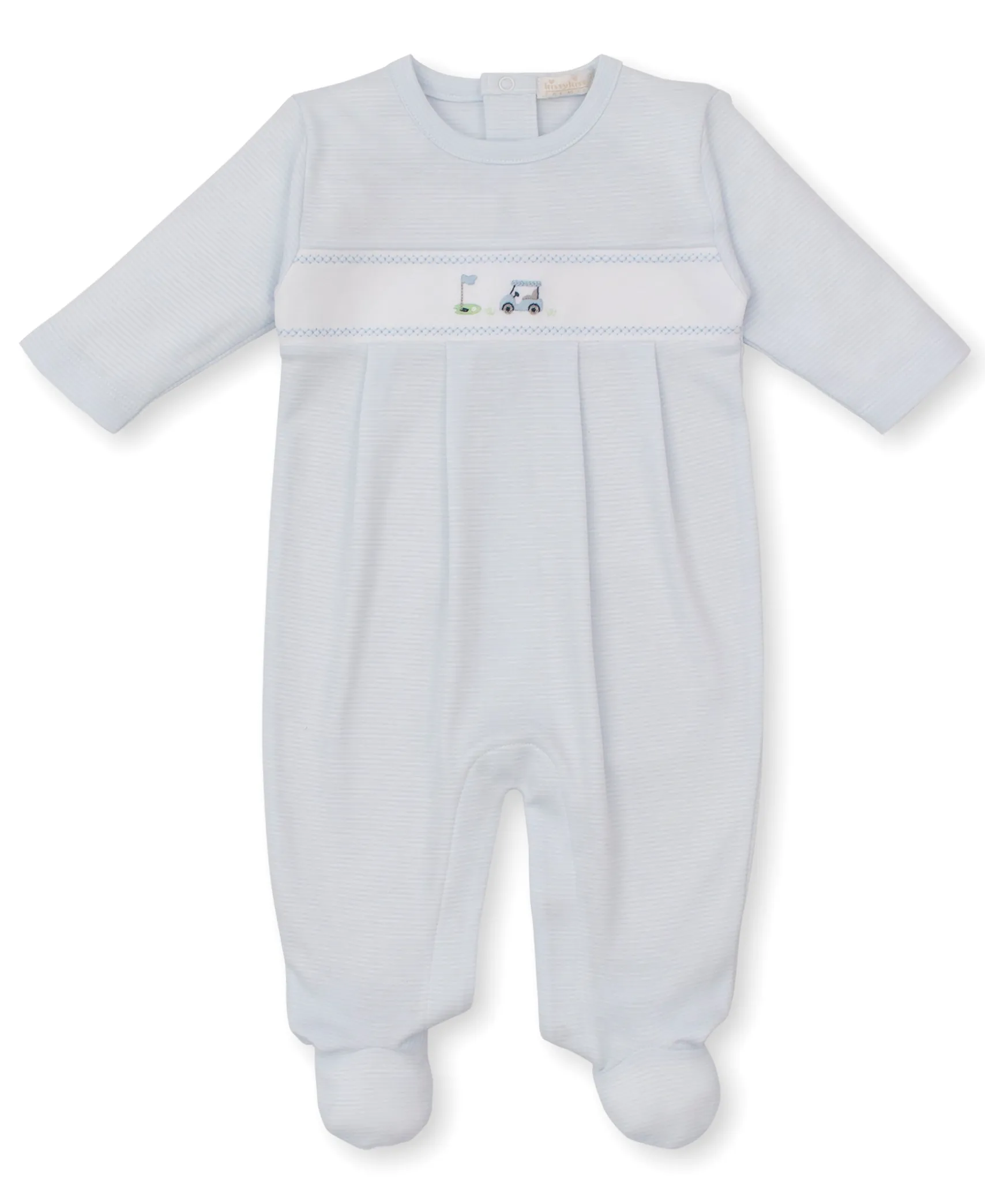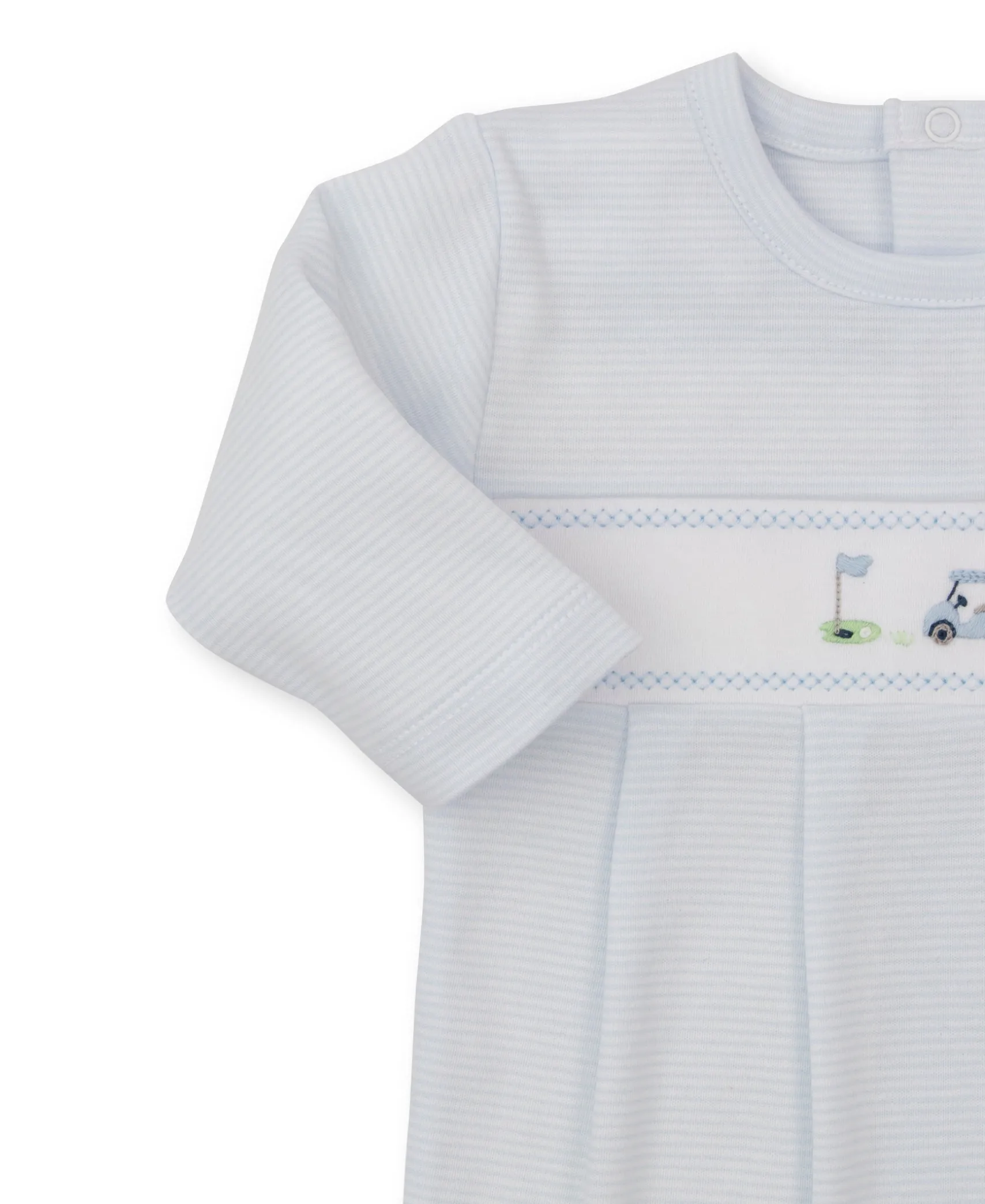 Golf themed embroidery adorns this cozy stripe footie for your baby. Made from the softest Pima cotton for ultimate comfort.