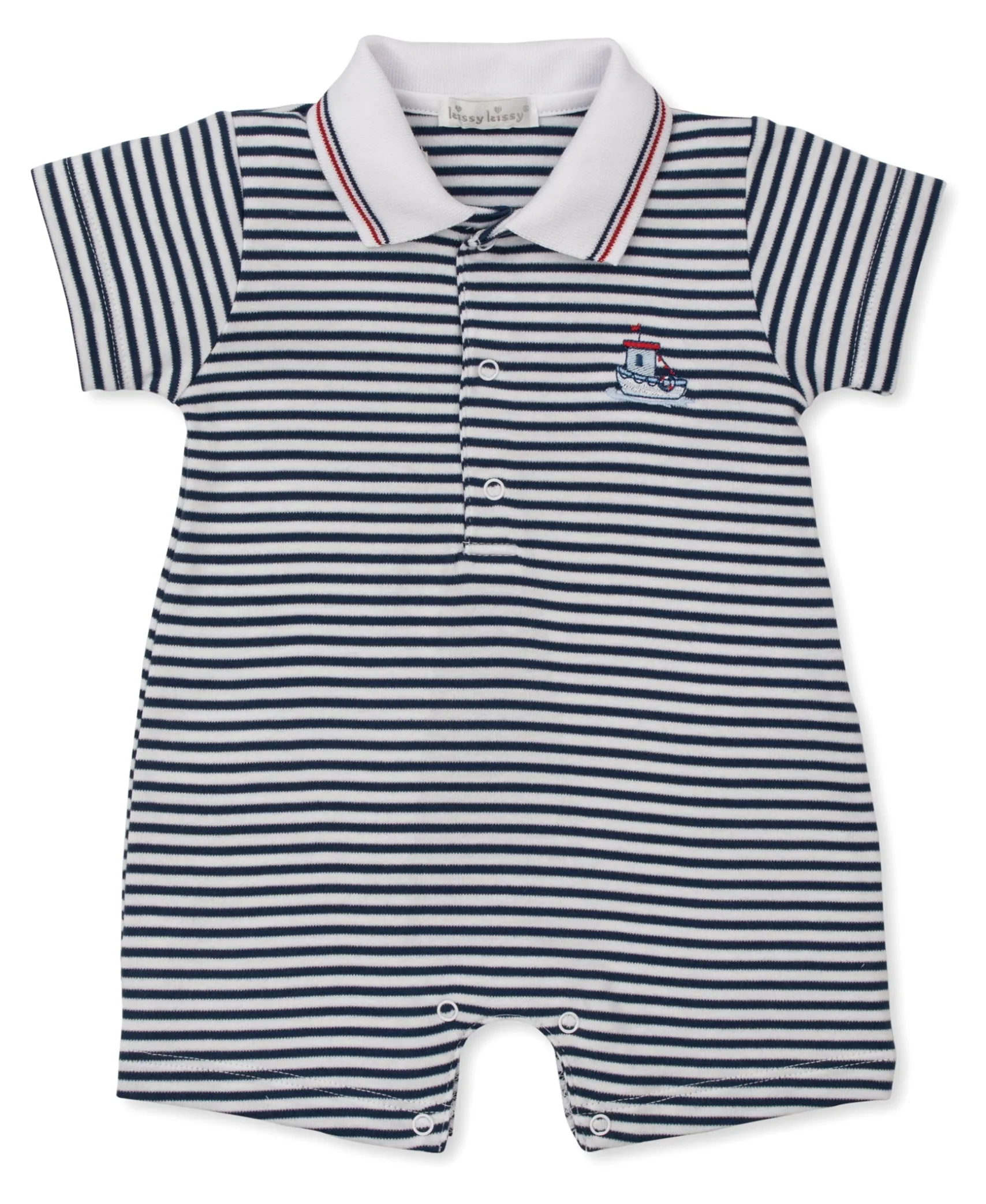 Fun stripes and a little boat motif patterns this cute romper for your baby. Made from the softest Pima cotton for ultimate comfort.